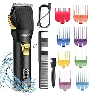 Amazon Com Hair Clippers For Men Cordless Xpoliman Professional Clippers For Barbers Grooming Kit Rechargeable Hair Cutting Kit Stainless Steel Blades Quite Wireless Led Display Ipx7 Waterproof Black Gold Beauty Personal Care